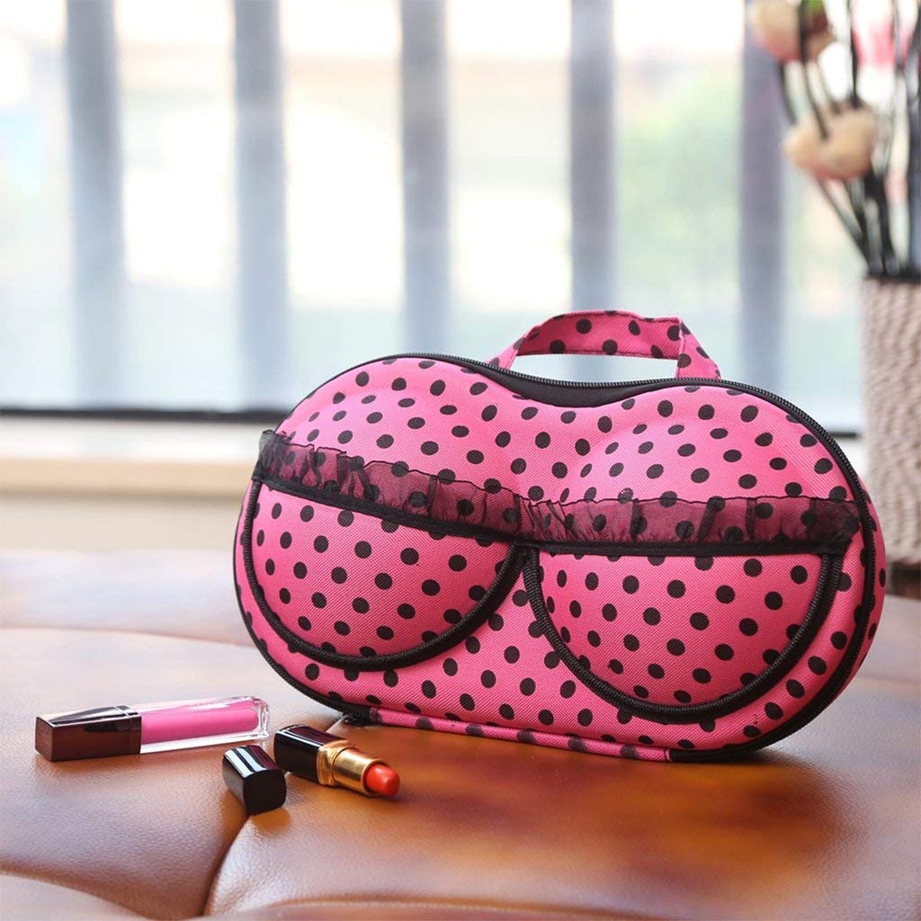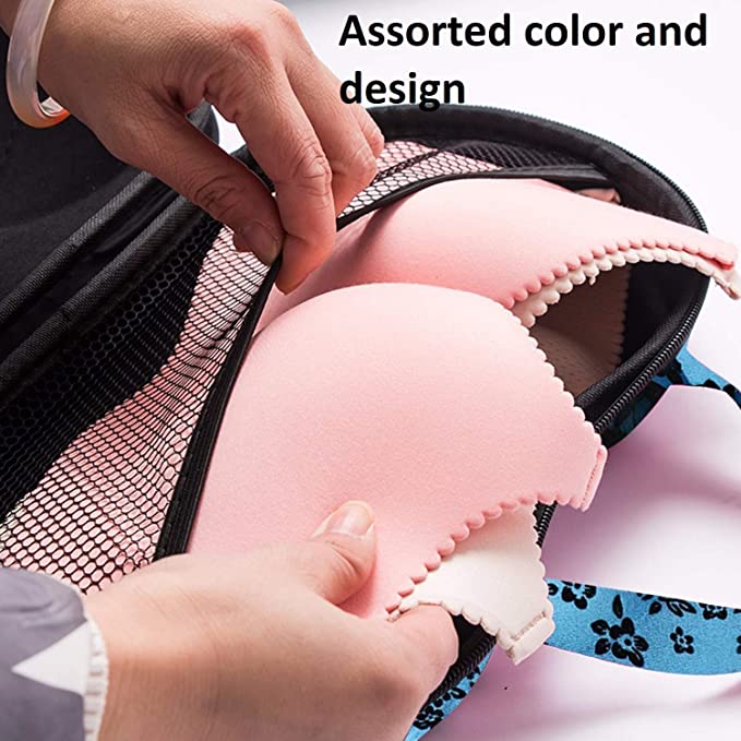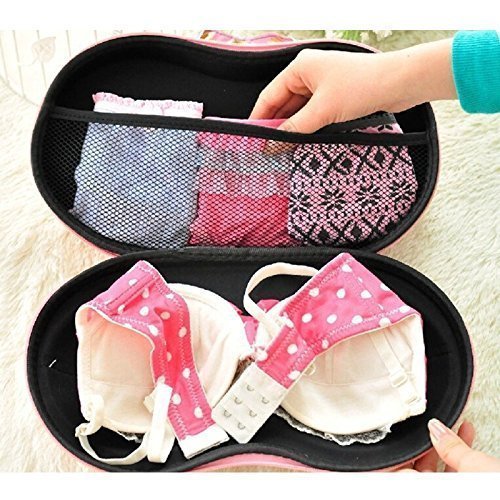 - This product is just perfect for elegant ladies and fashionable girls. The case can help you store for 4 to 6 bras, the inner mesh pocket can store 4-6 underwear. You will never have to worry about your bras being out of shape again and it looks great! Hard case will protect your lingerie from being crushed in your luggage.