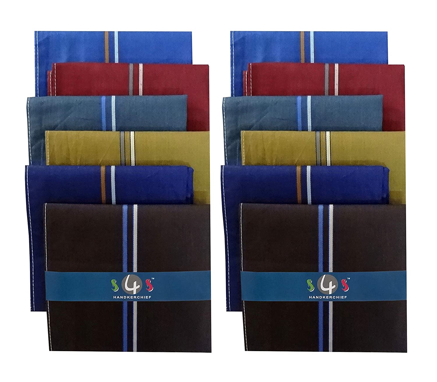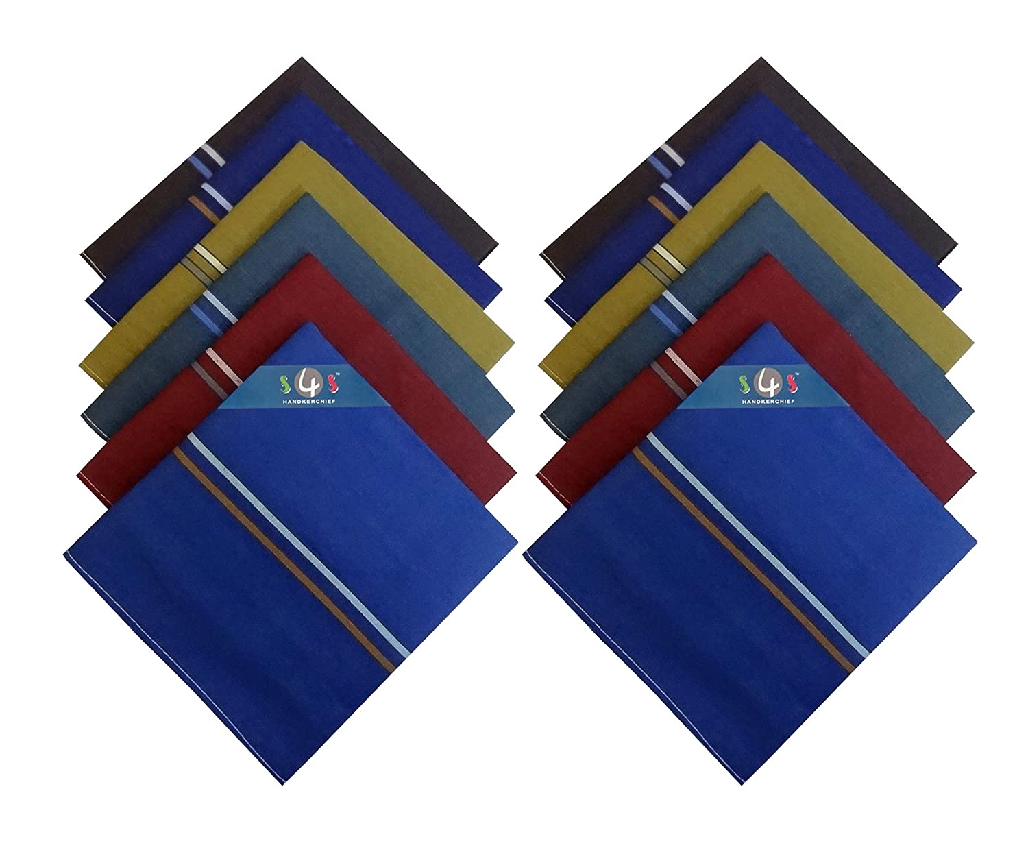 Poftik 100% Cotton Premium Collection Handkerchiefs Hanky For Men - Pack of 12