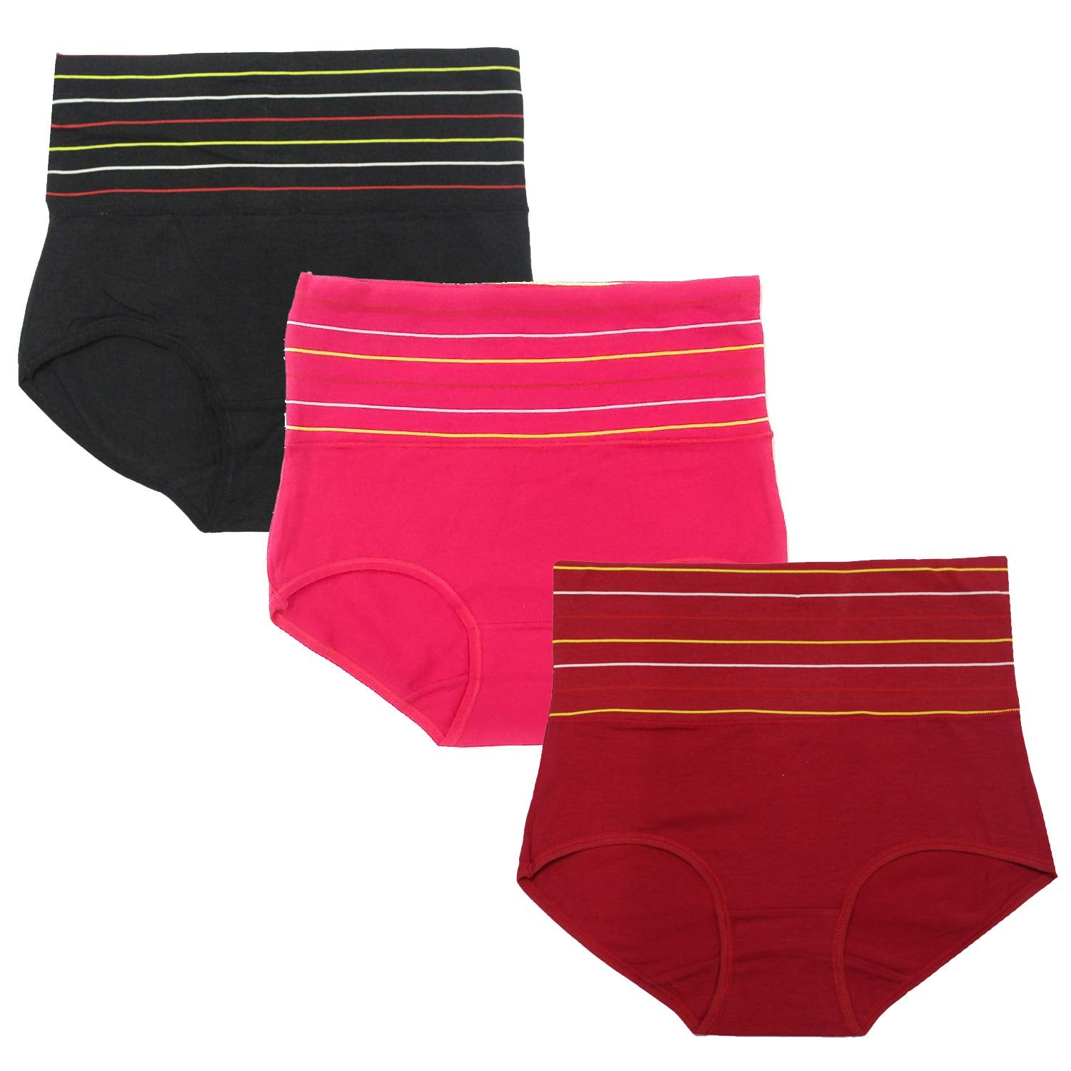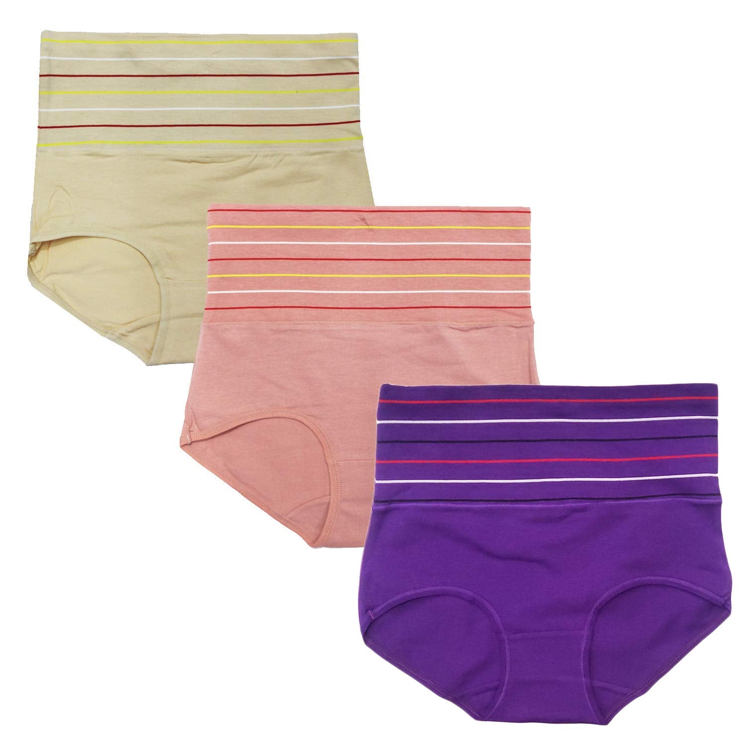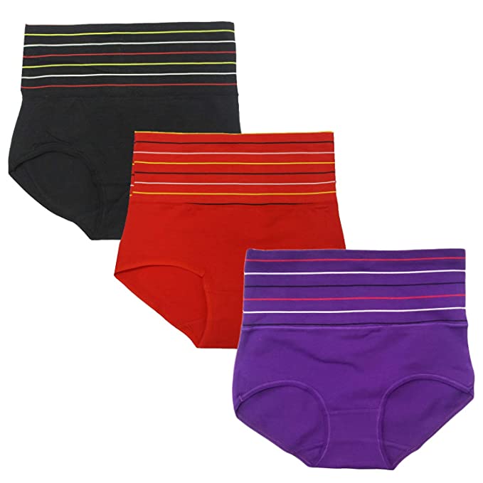 Poftik Women's Multicolor Women's Cotton High Waist Full Coverage Tummy Tucker Panty, Pack Of 3