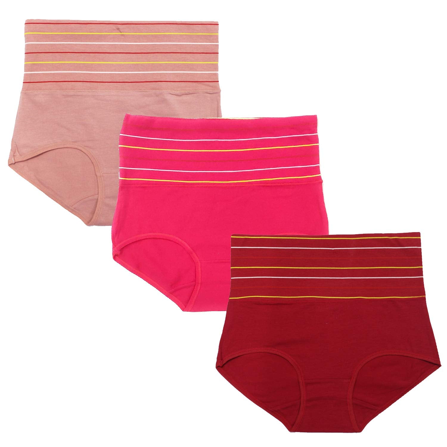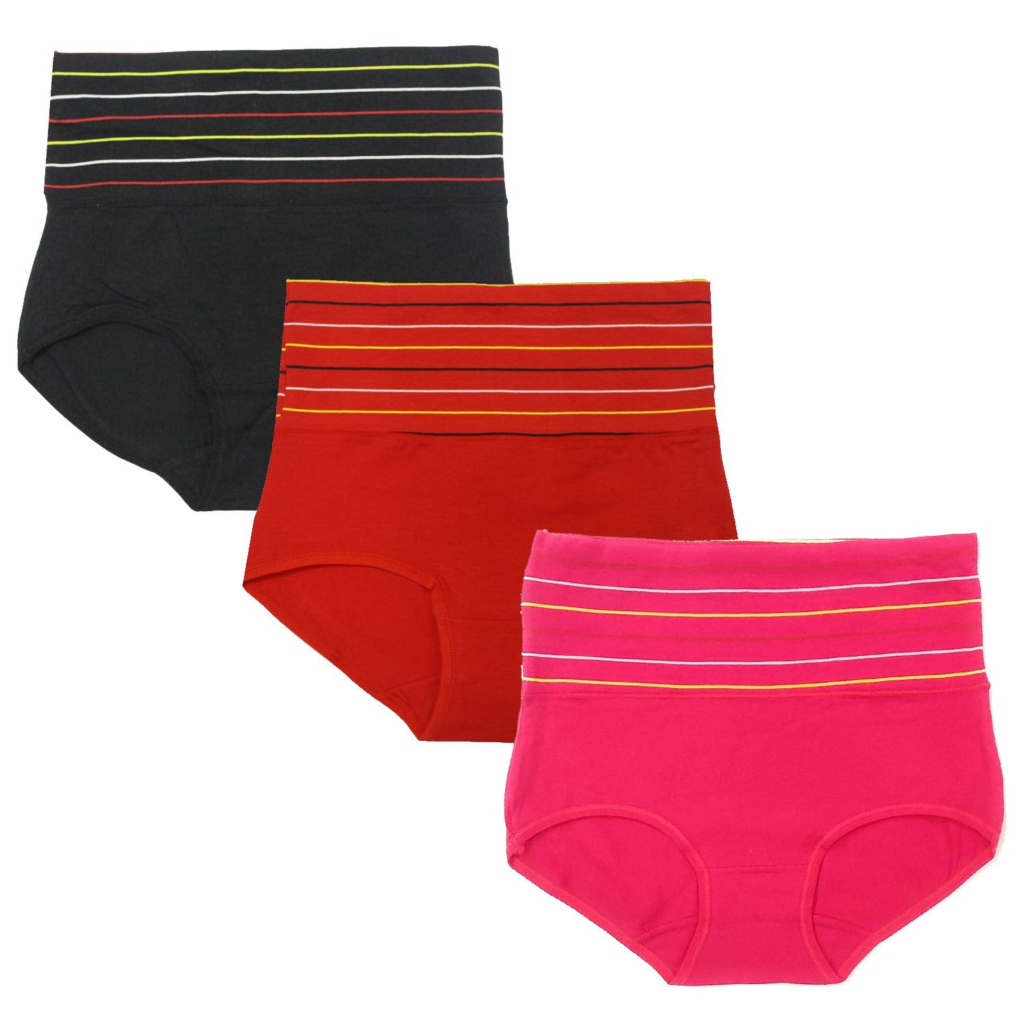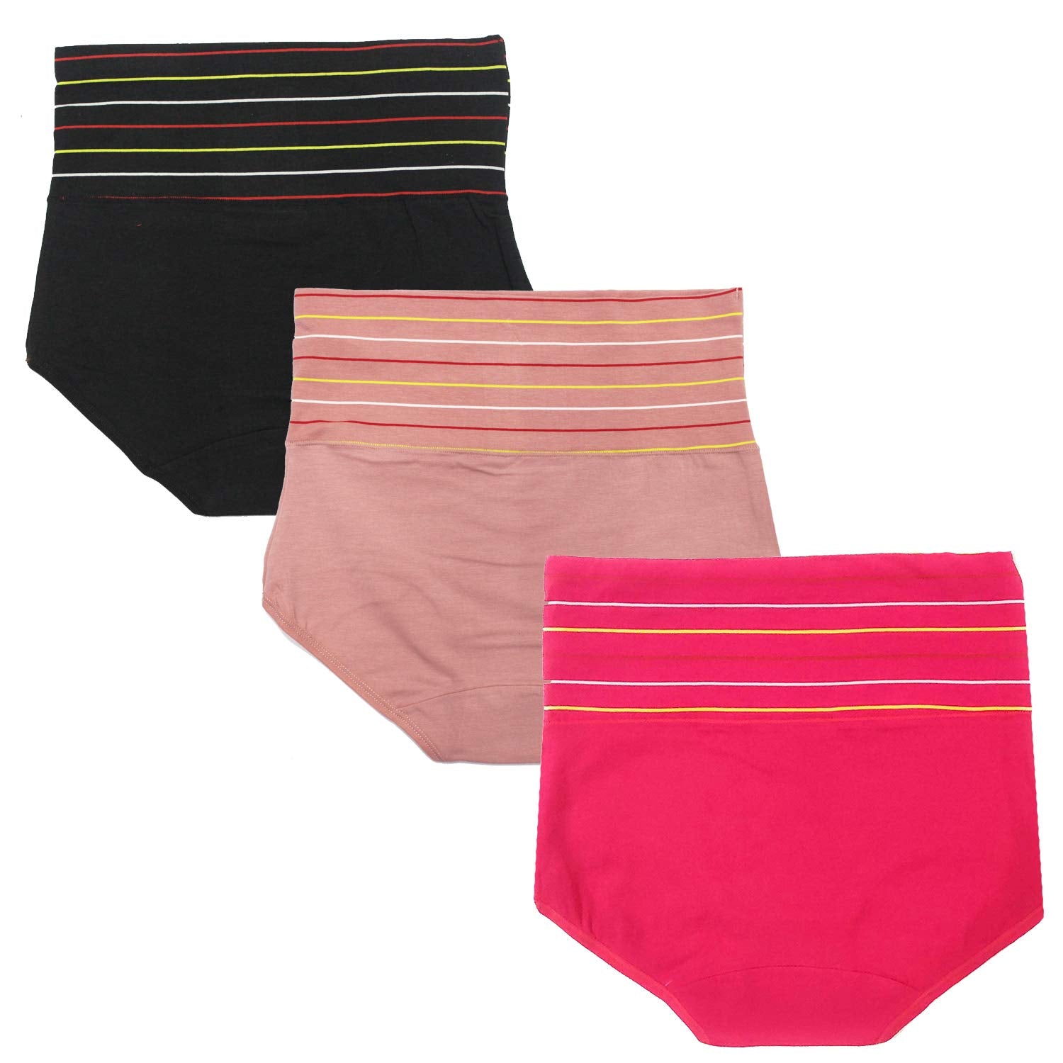 Poftik Women's Multicolor Women's Cotton High Waist Full Coverage Tummy Tucker Panty, Pack Of 3