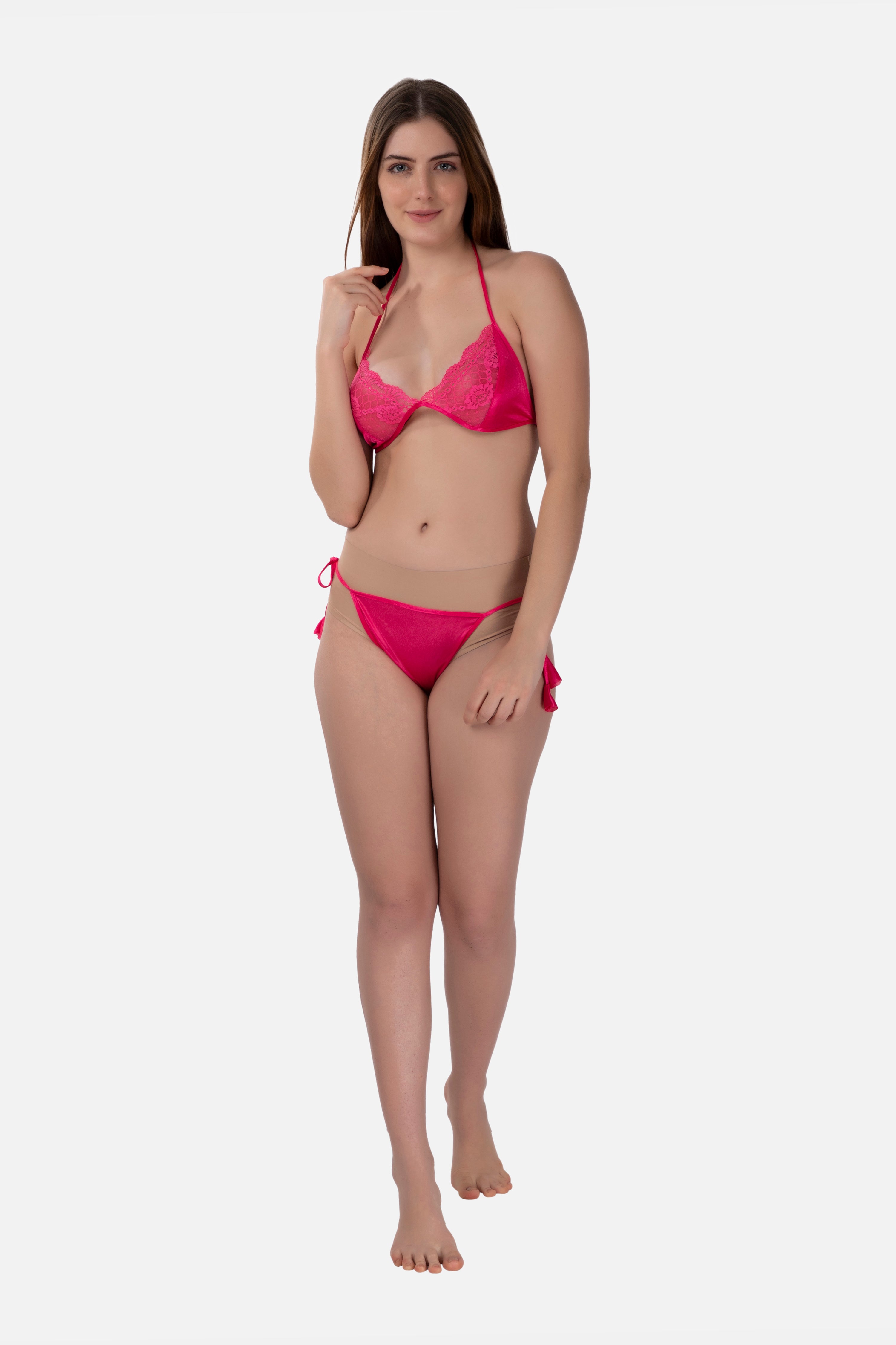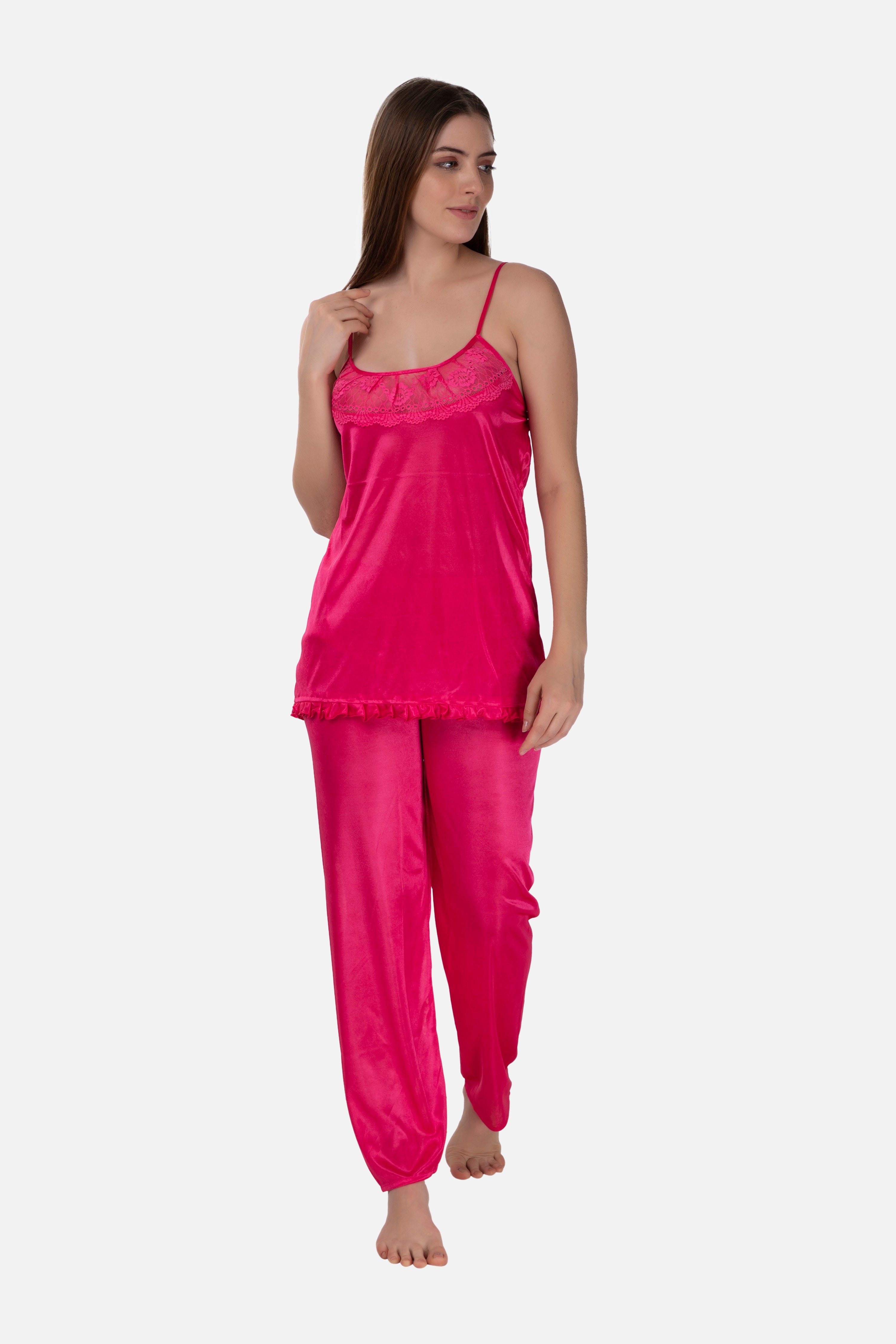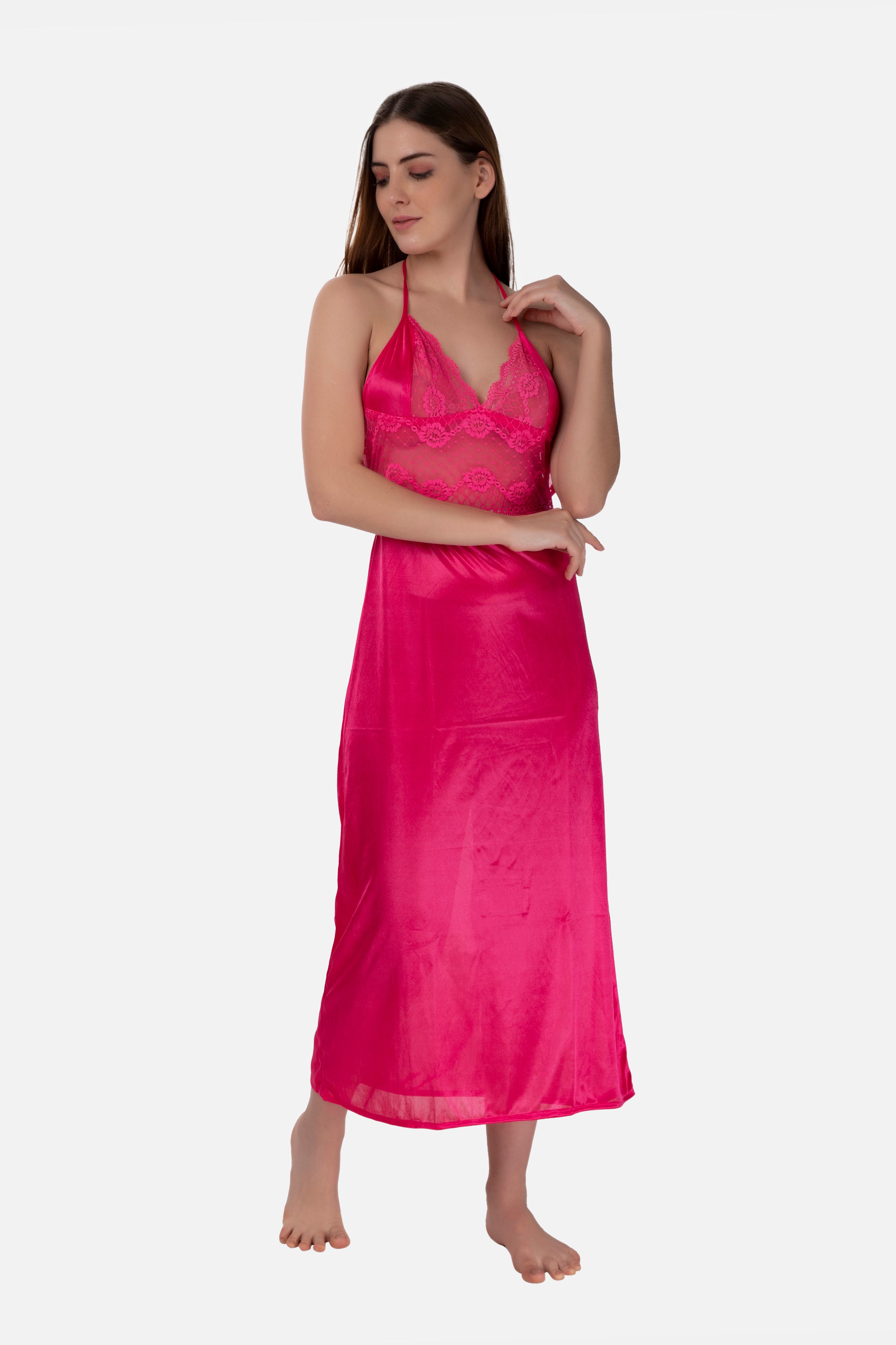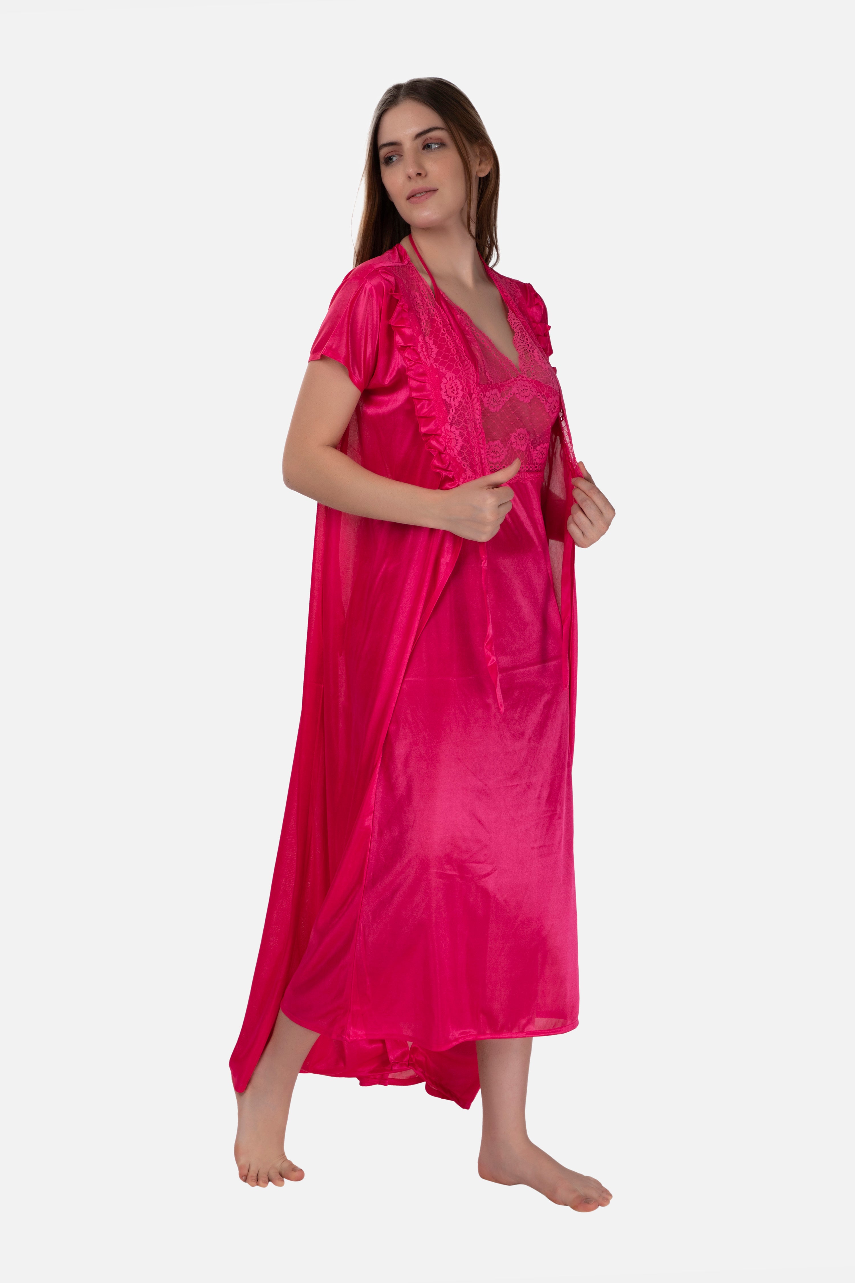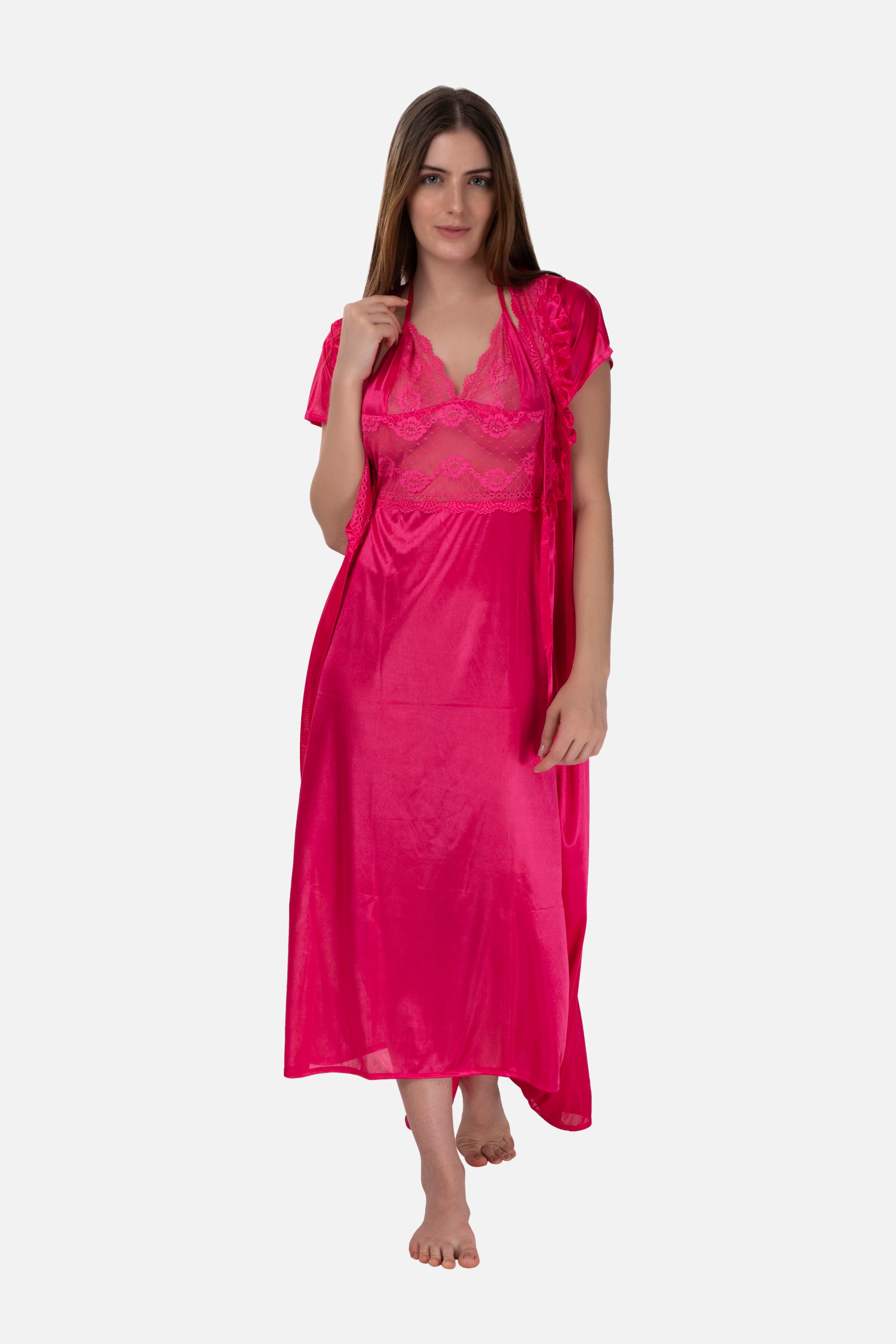 Poftik Satin Nighty with Robe 6Pc Set, Bridal Nighty with Nighty Robe, Top with Pajamas, Night Dress, Bra, Panty, Free-Size - Rani, SKU- 6008