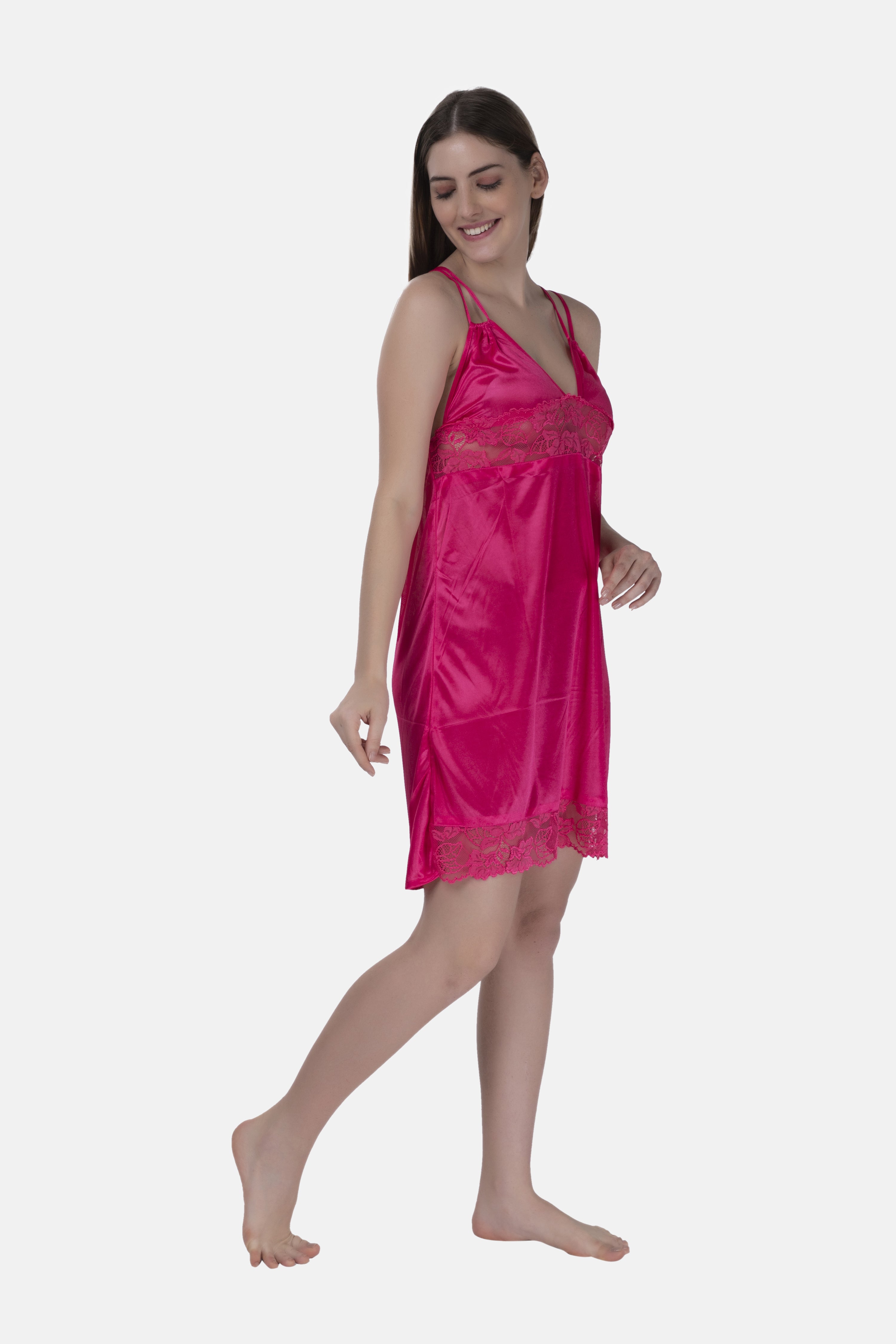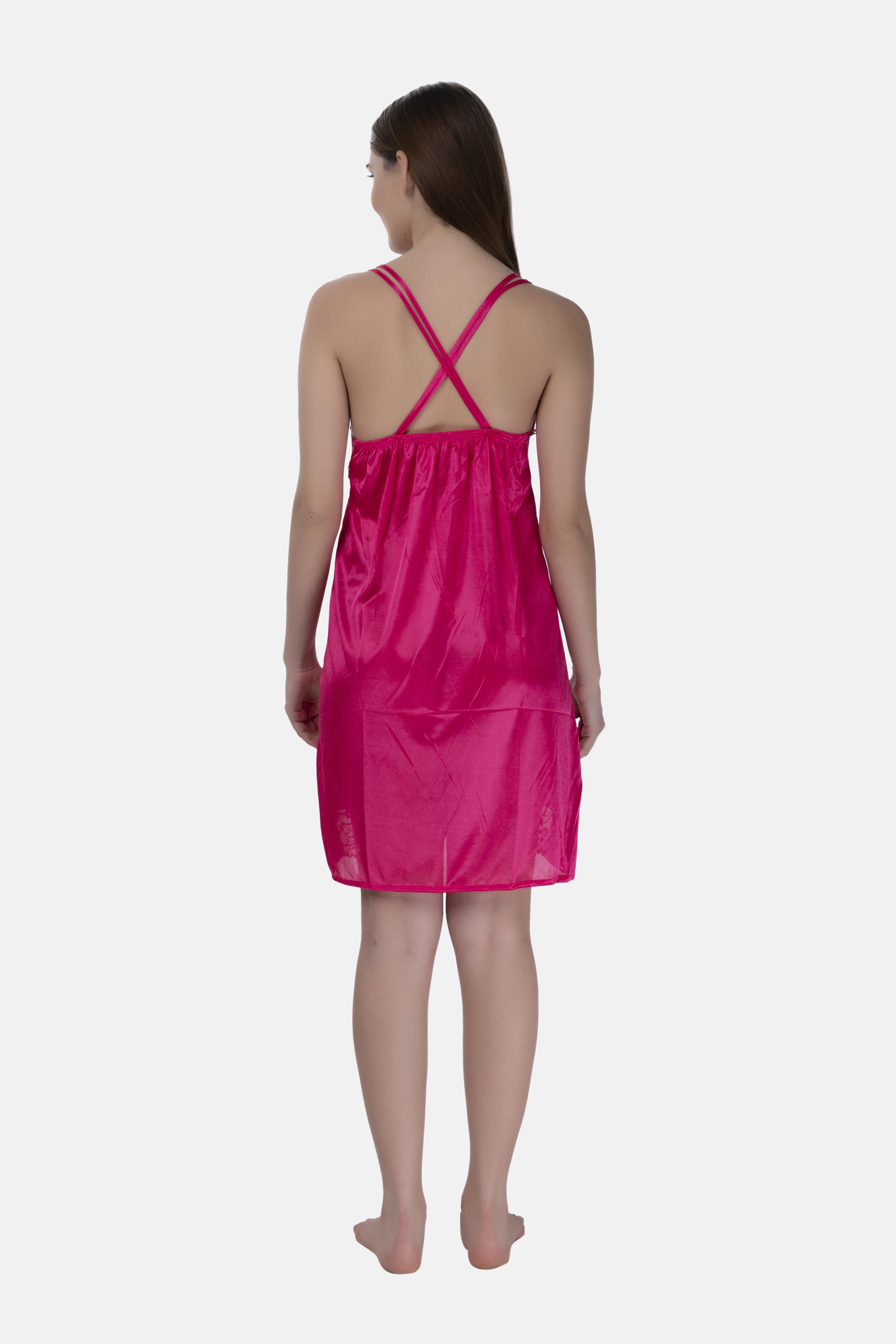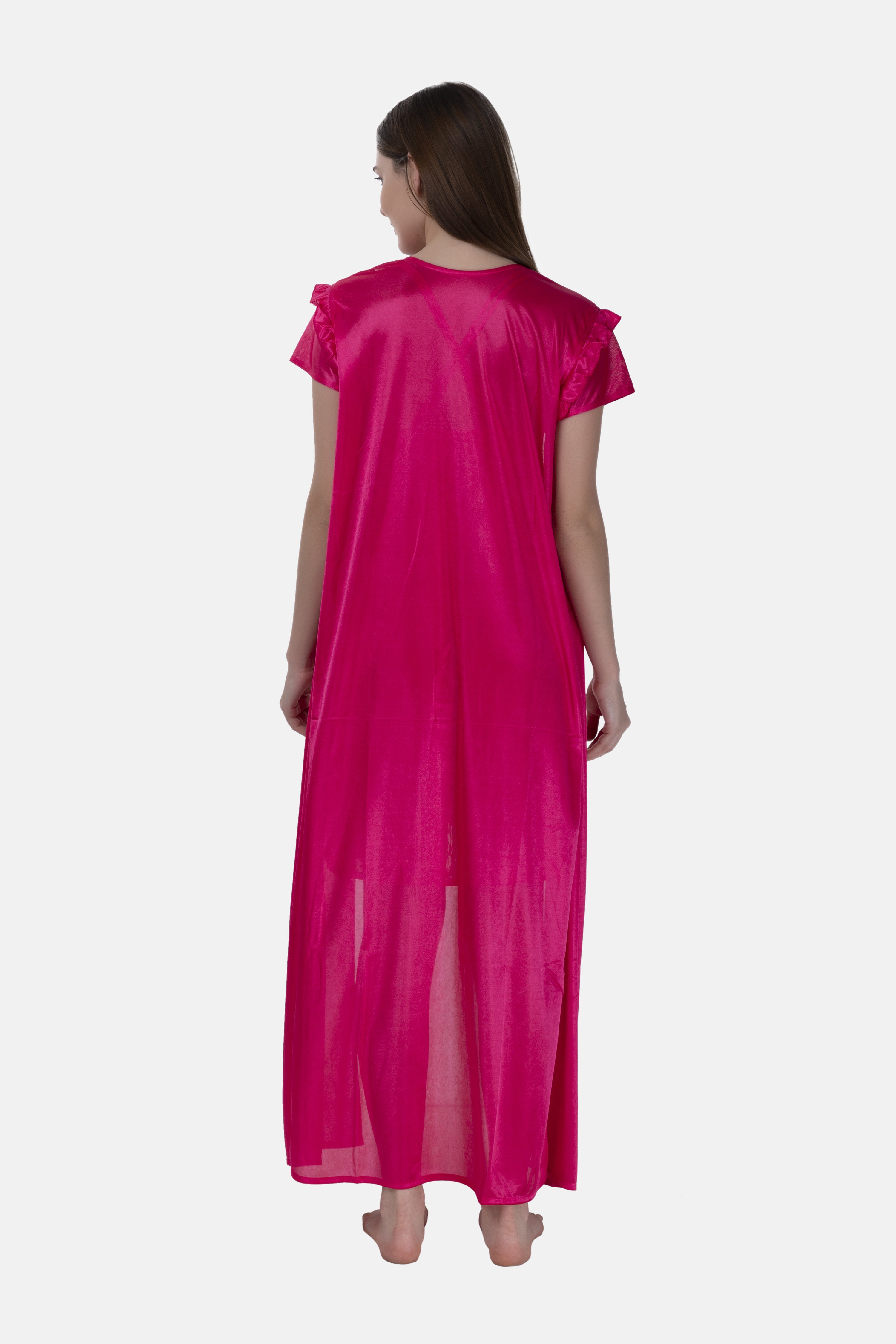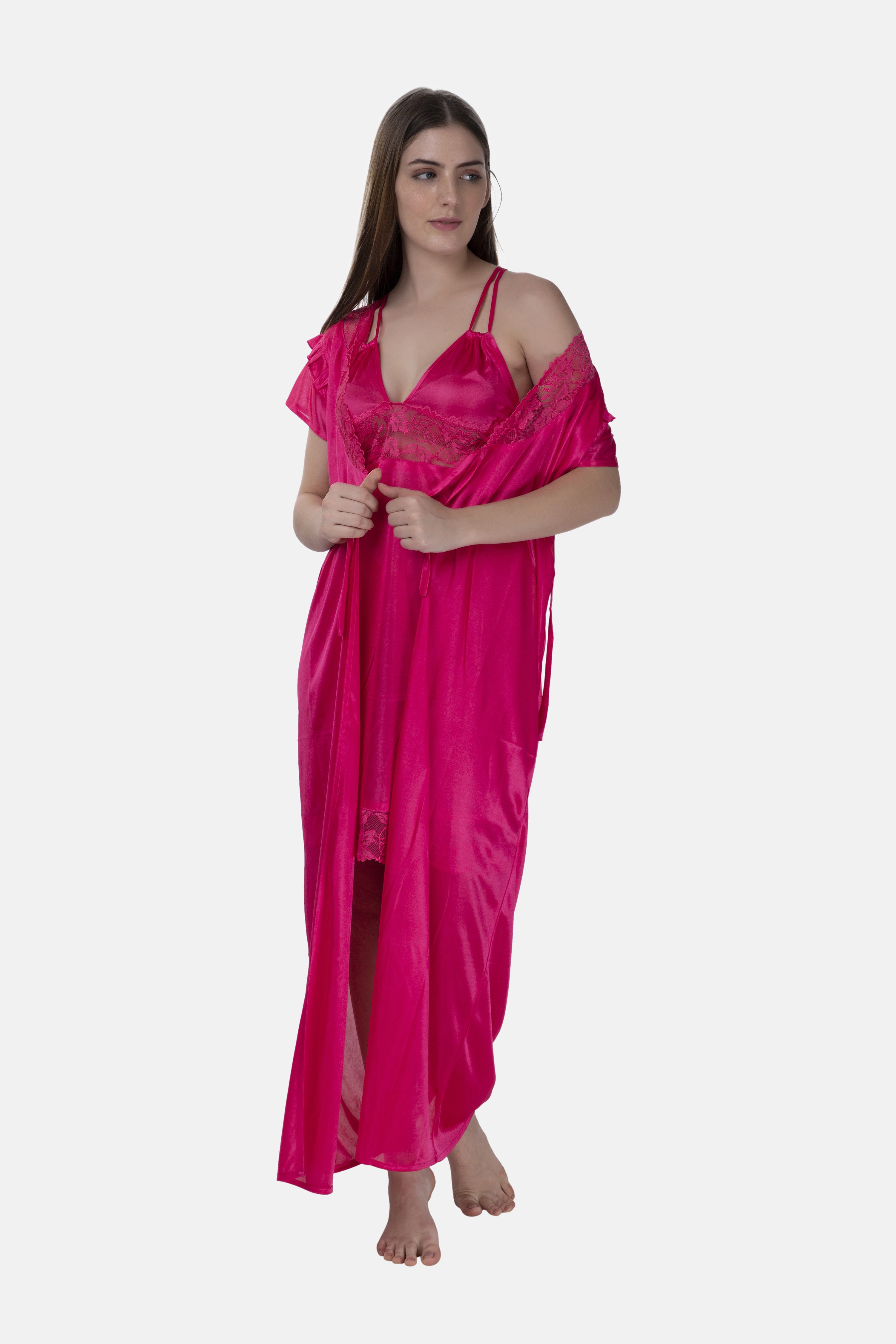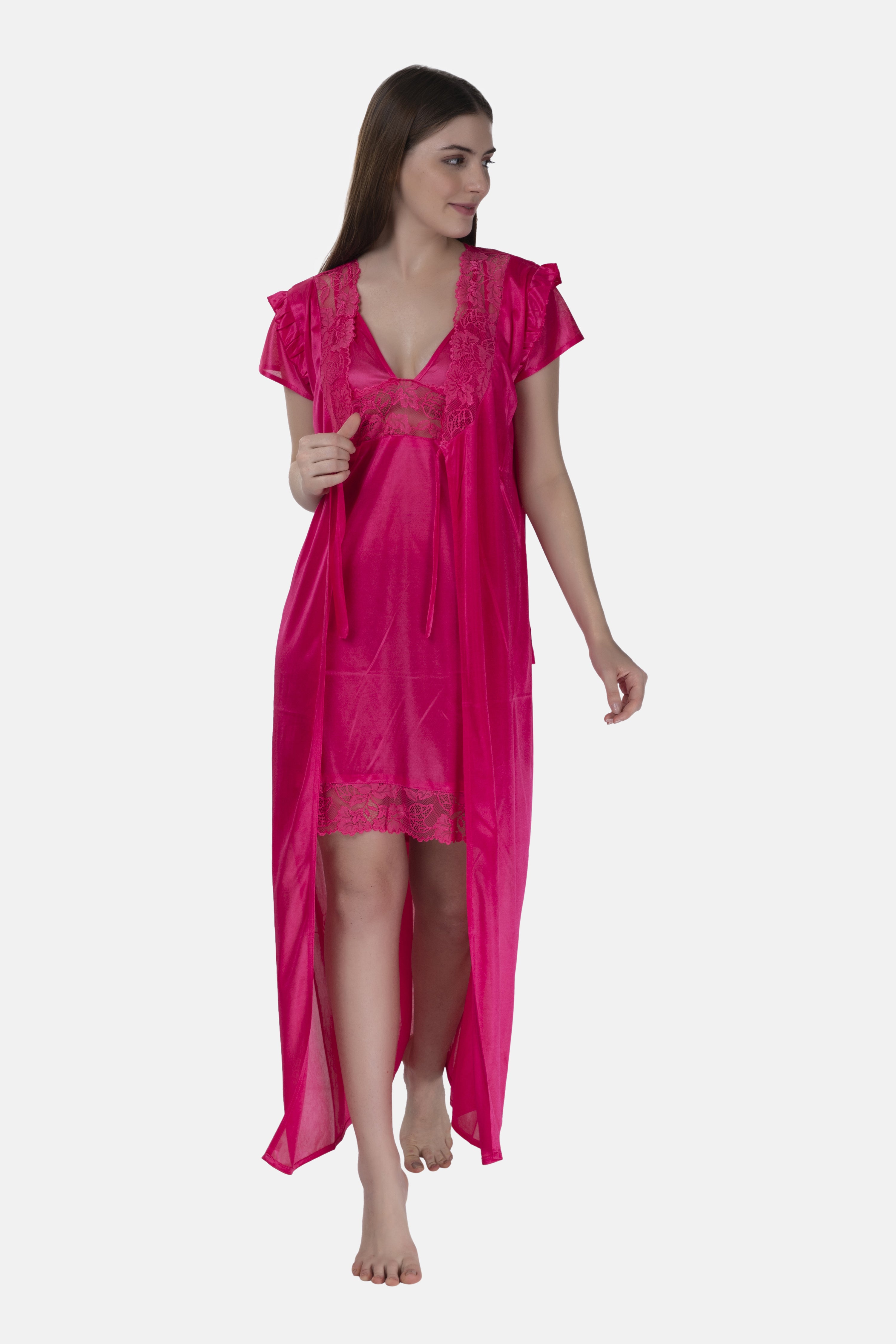 Poftik Satin Nighty with Robe 2Pc Set, Bridal Knee Length Night Dress Free-Size - Gajri, SKU- 2396