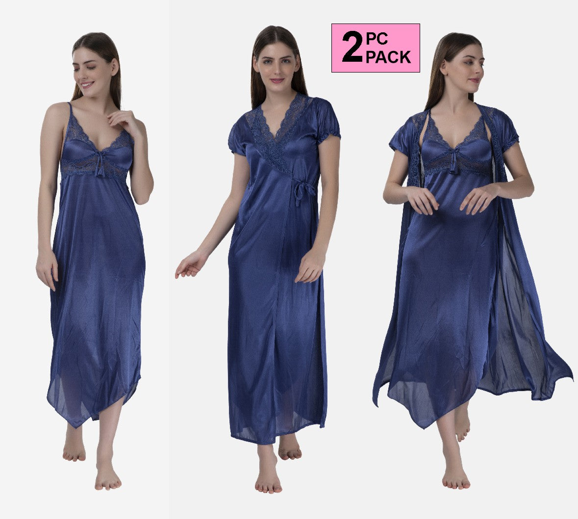 - 2 Pcs Ankel Lenght Satin Nighty & Robe