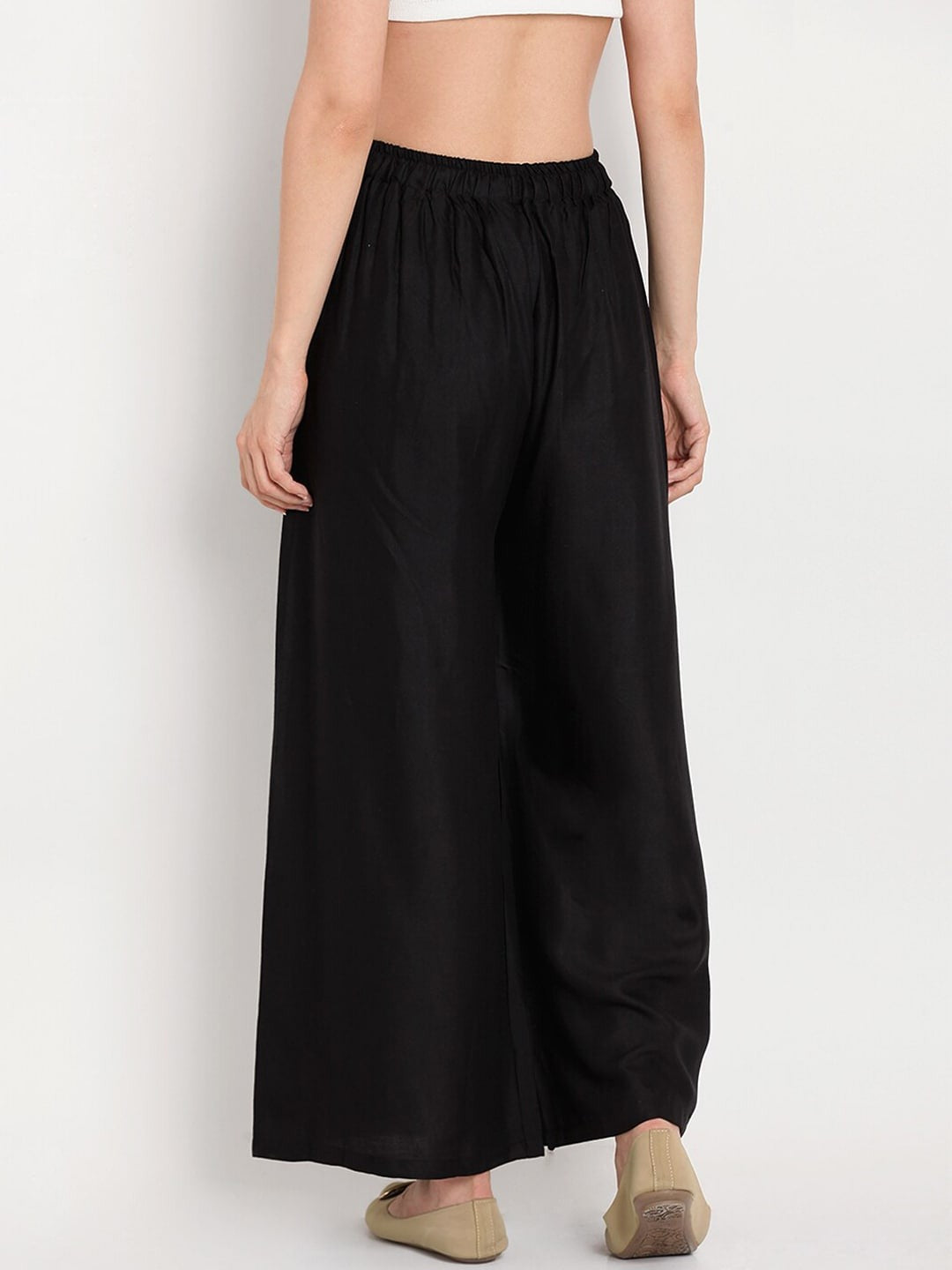 Poftik Women Ryon Black Solid Straight Palazzo