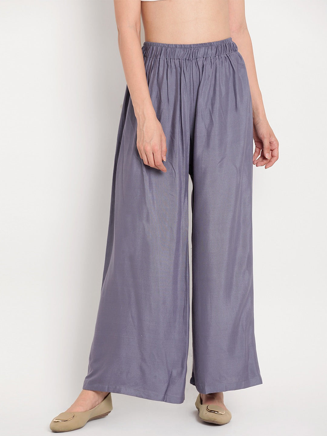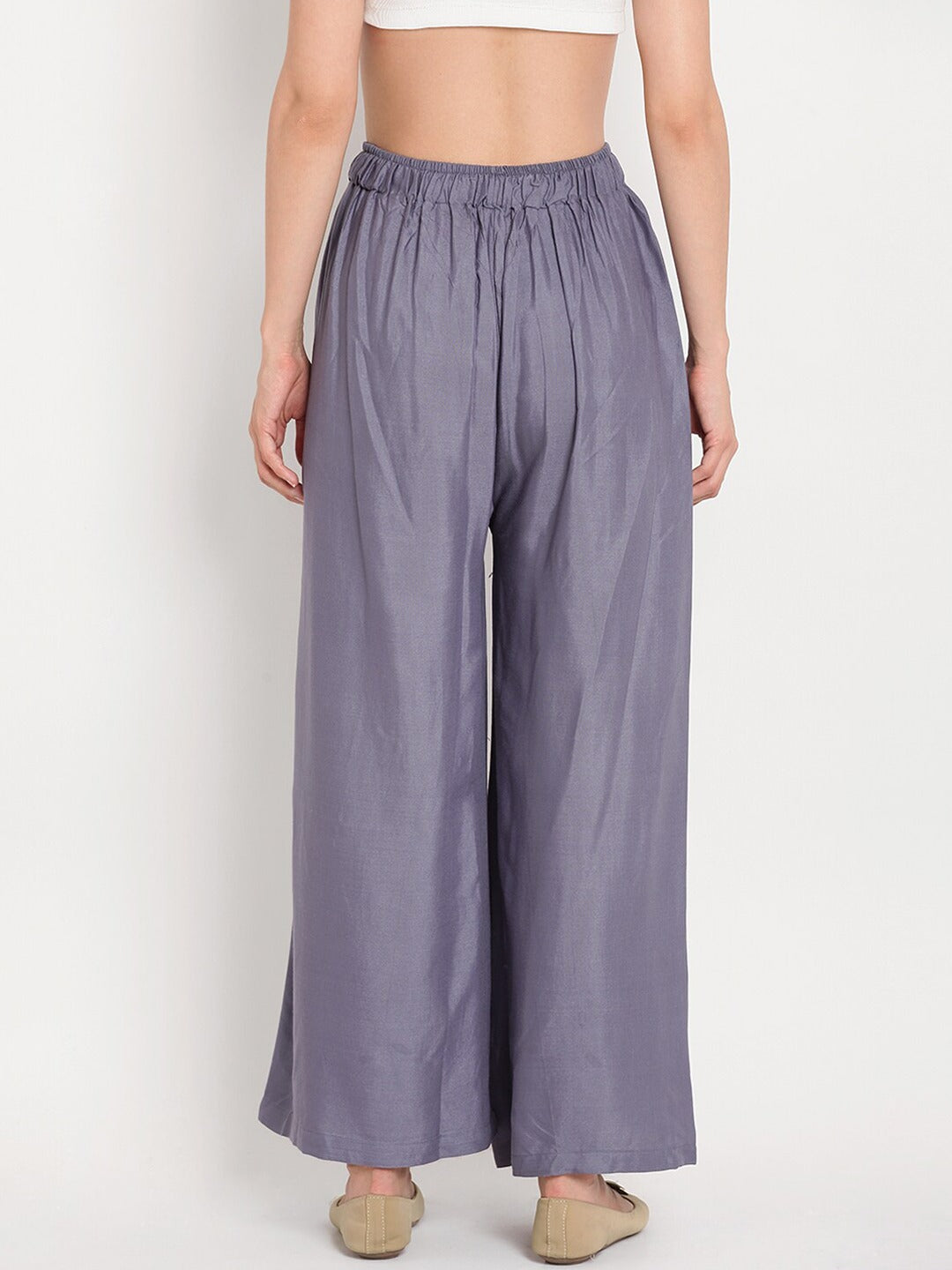Poftik Women Ryon Grey Solid Straight Palazzo