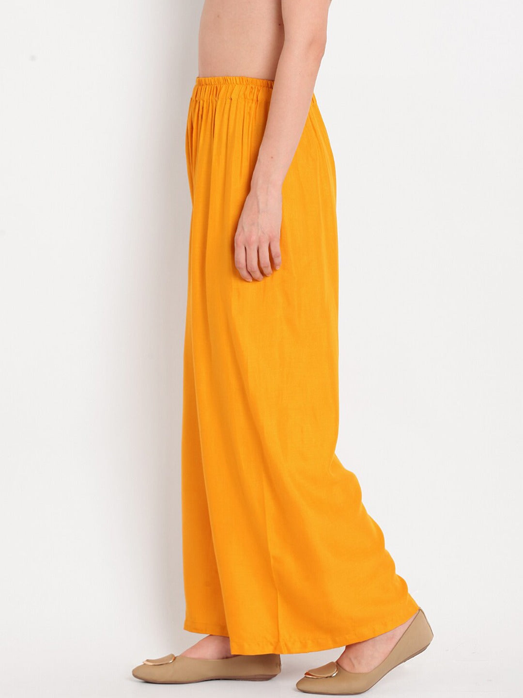 Poftik Women Ryon Musturd Solid Straight Palazzo