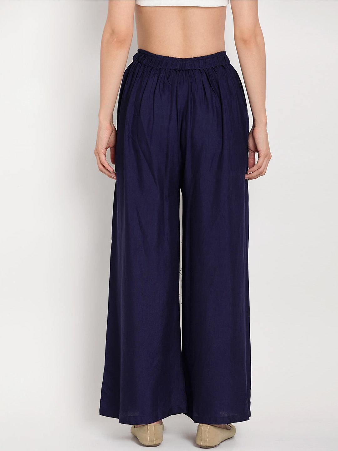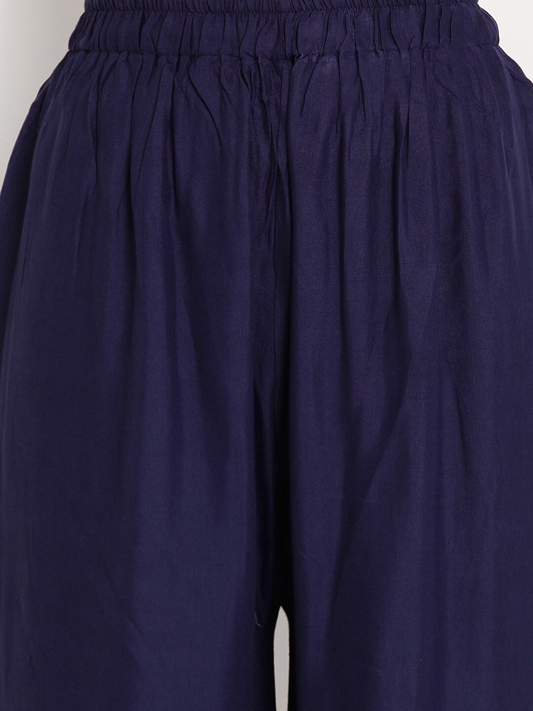 Poftik Women Ryon Navy Blue Solid Straight Palazzo