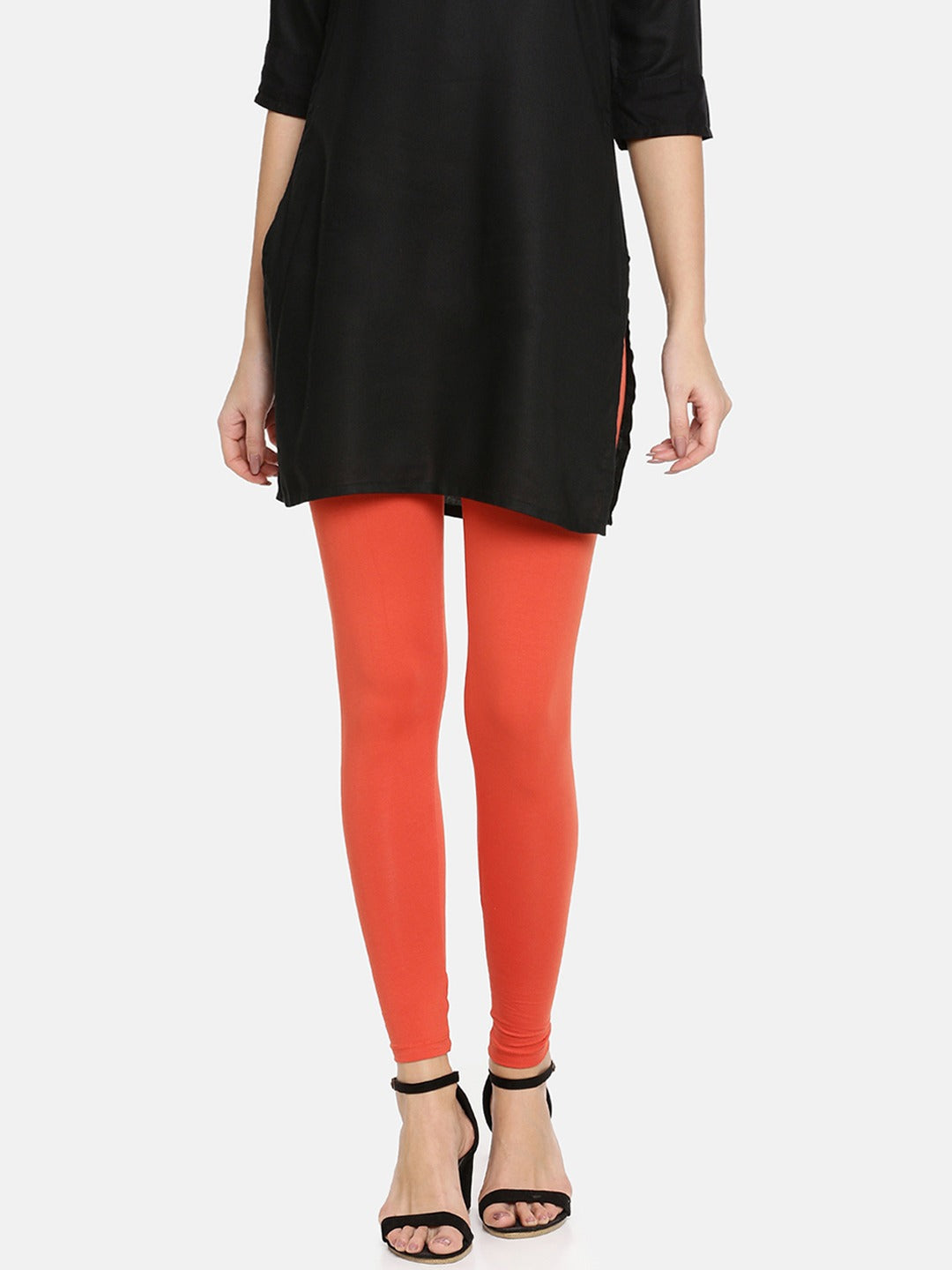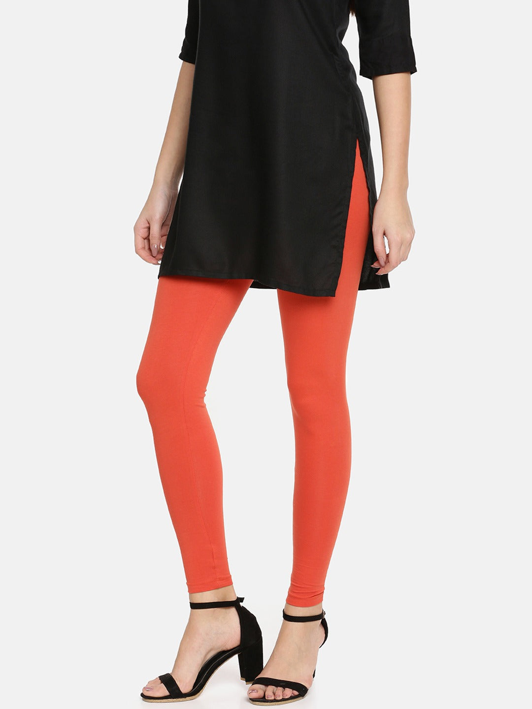 Poftik Women's Skinny Fit Ankle Length Orange Leggings for Women