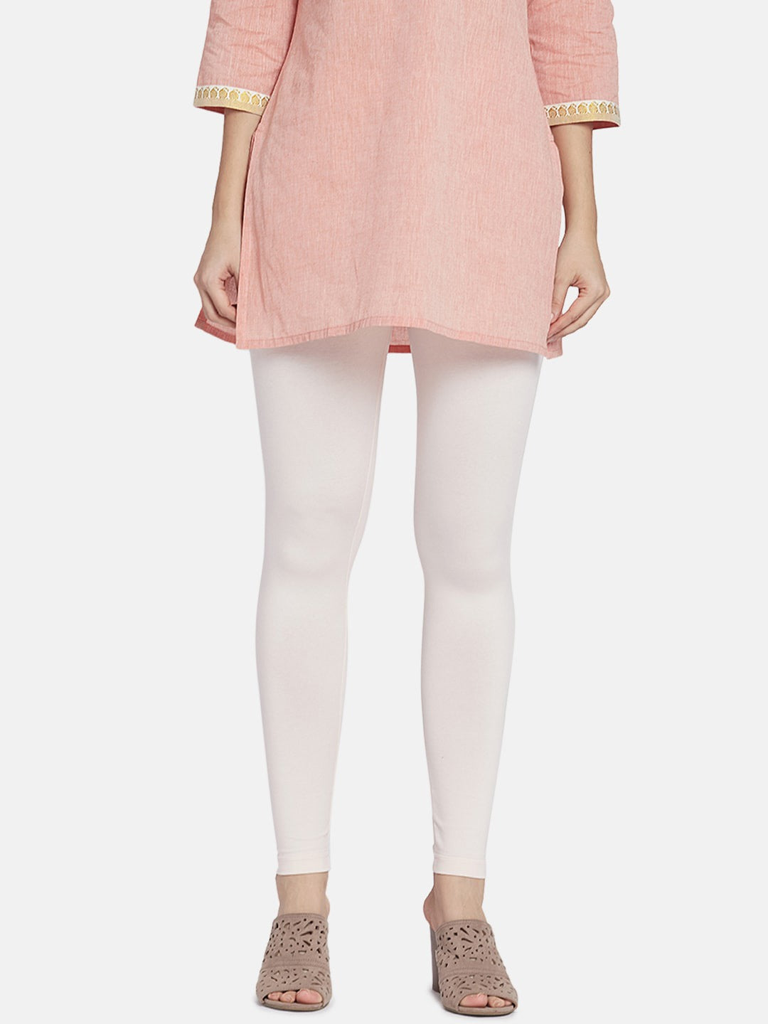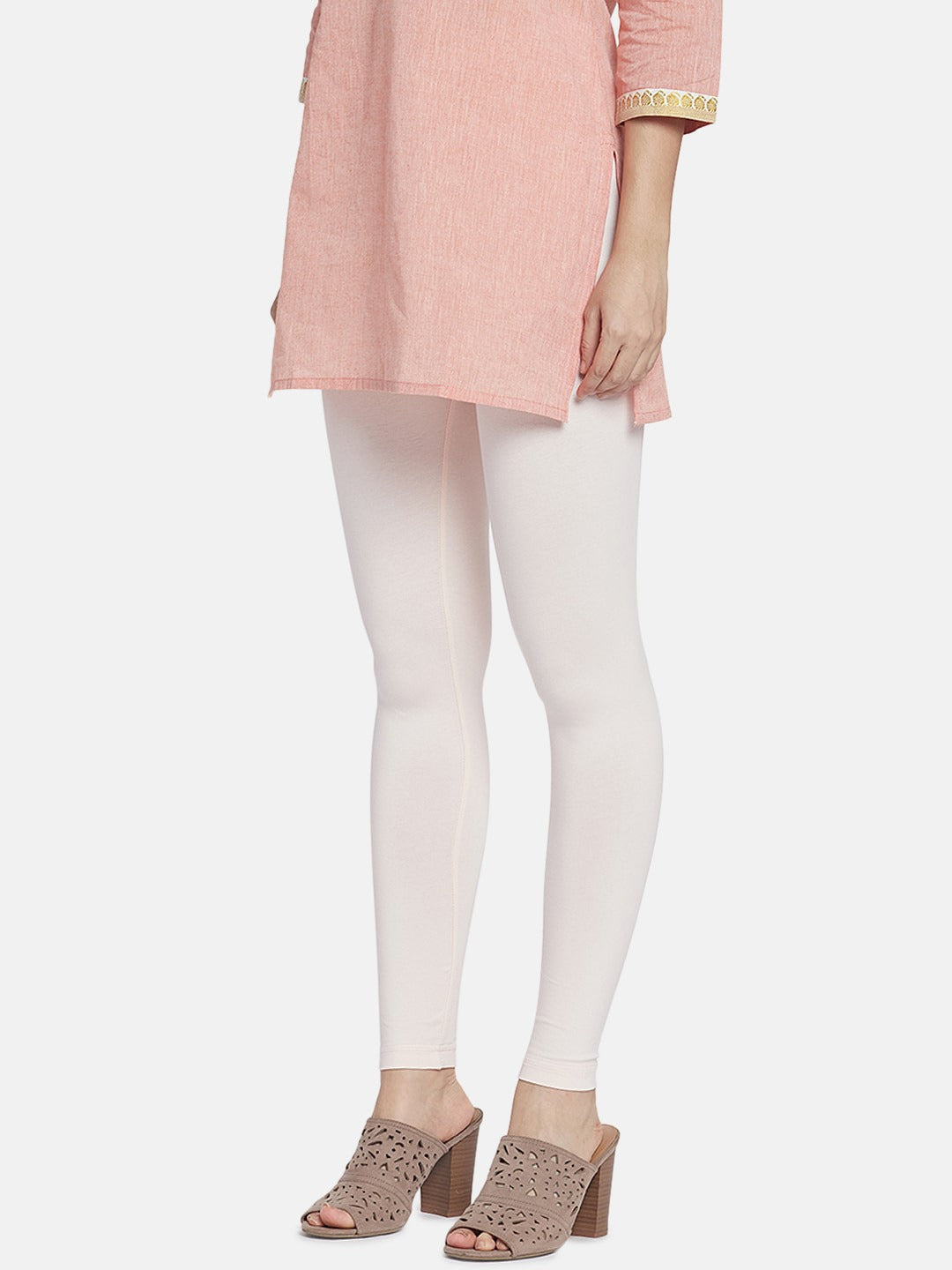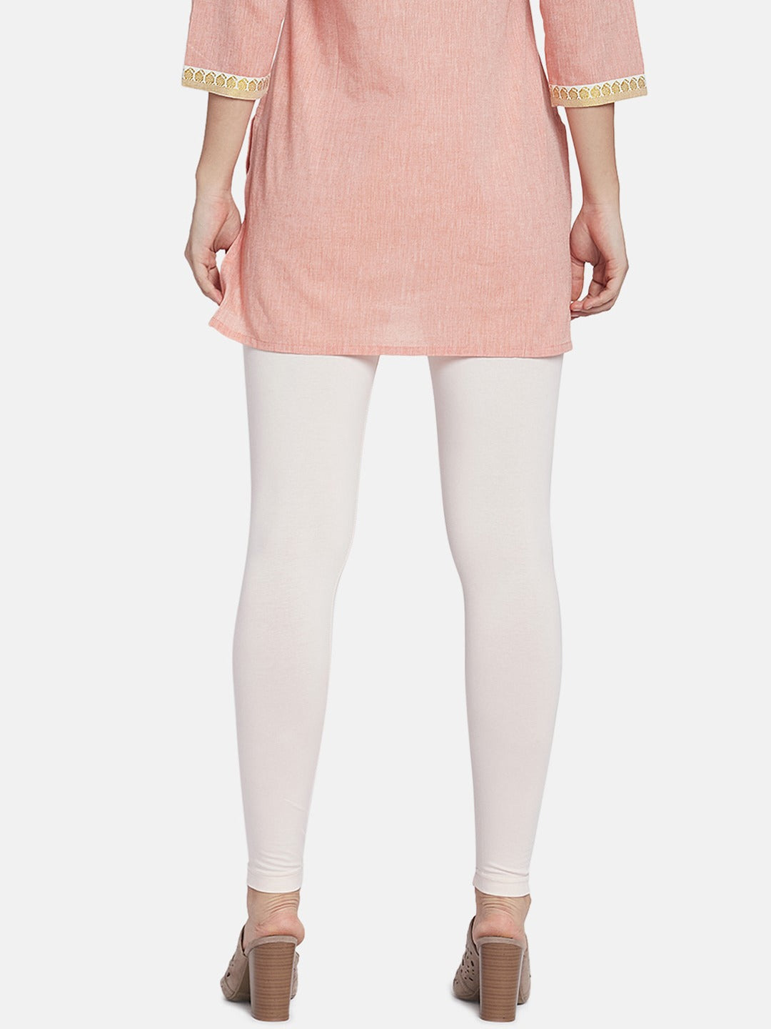 Poftik Women's Skinny Fit Ankle Length Off White Leggings for Women