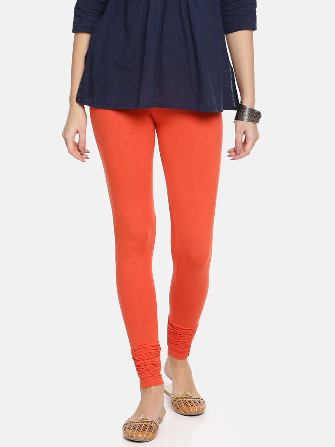 Poftik Women's Skinny Fit Orange Chudidaar Leggings for Women