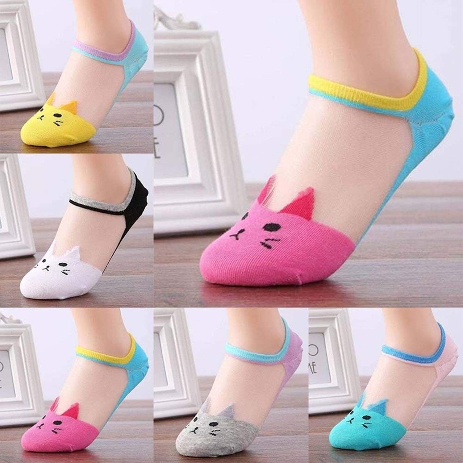 Poftik Ankle Length Cotton Cat Socks for Women & Girls (Pack of 6)