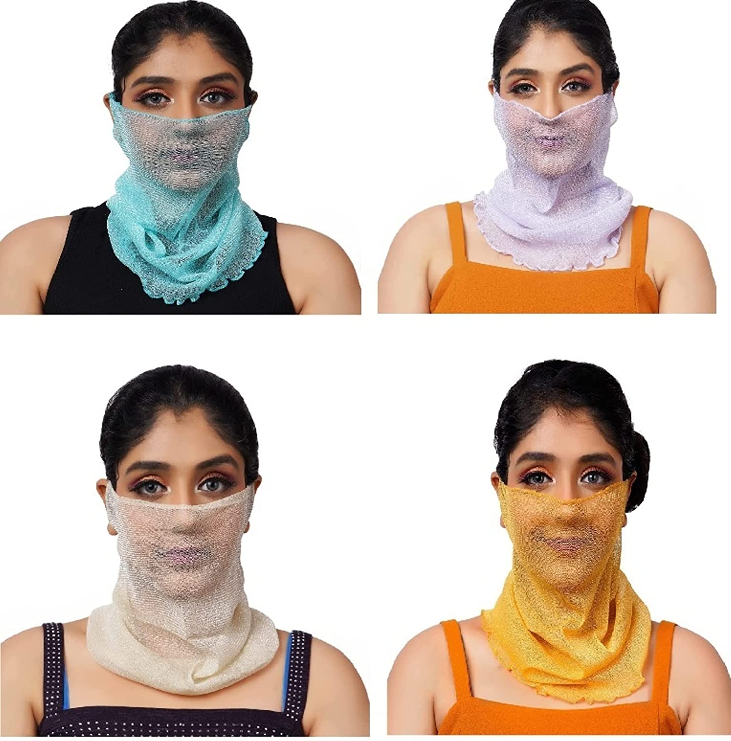 Poftik Women's Spring Summer Face Scarf Bandana Net Mask Soft Cashmere Neck Scarves Pack of 4