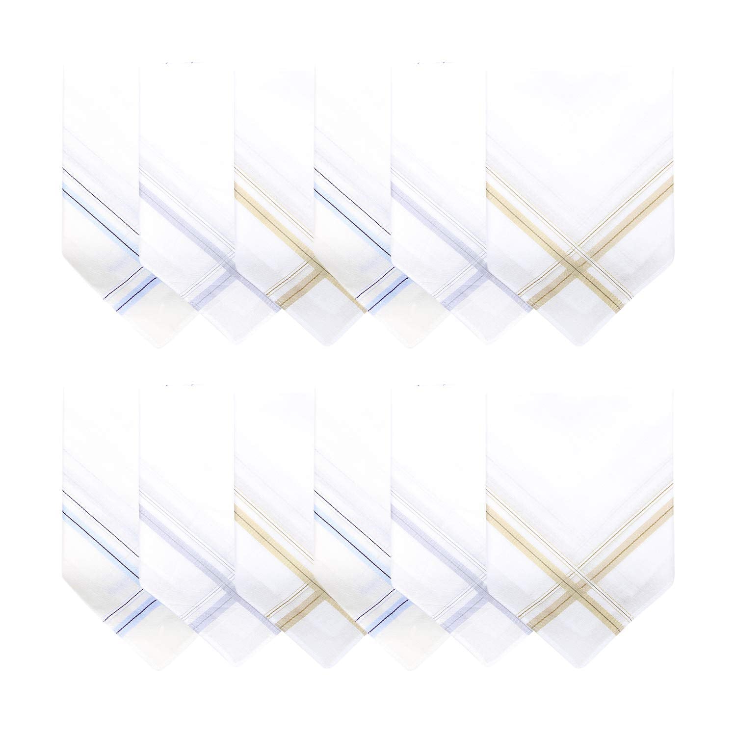 Poftik 100% Cotton Premium Collection Handkerchiefs Hanky For Men - Pack of 12. - White Striped.