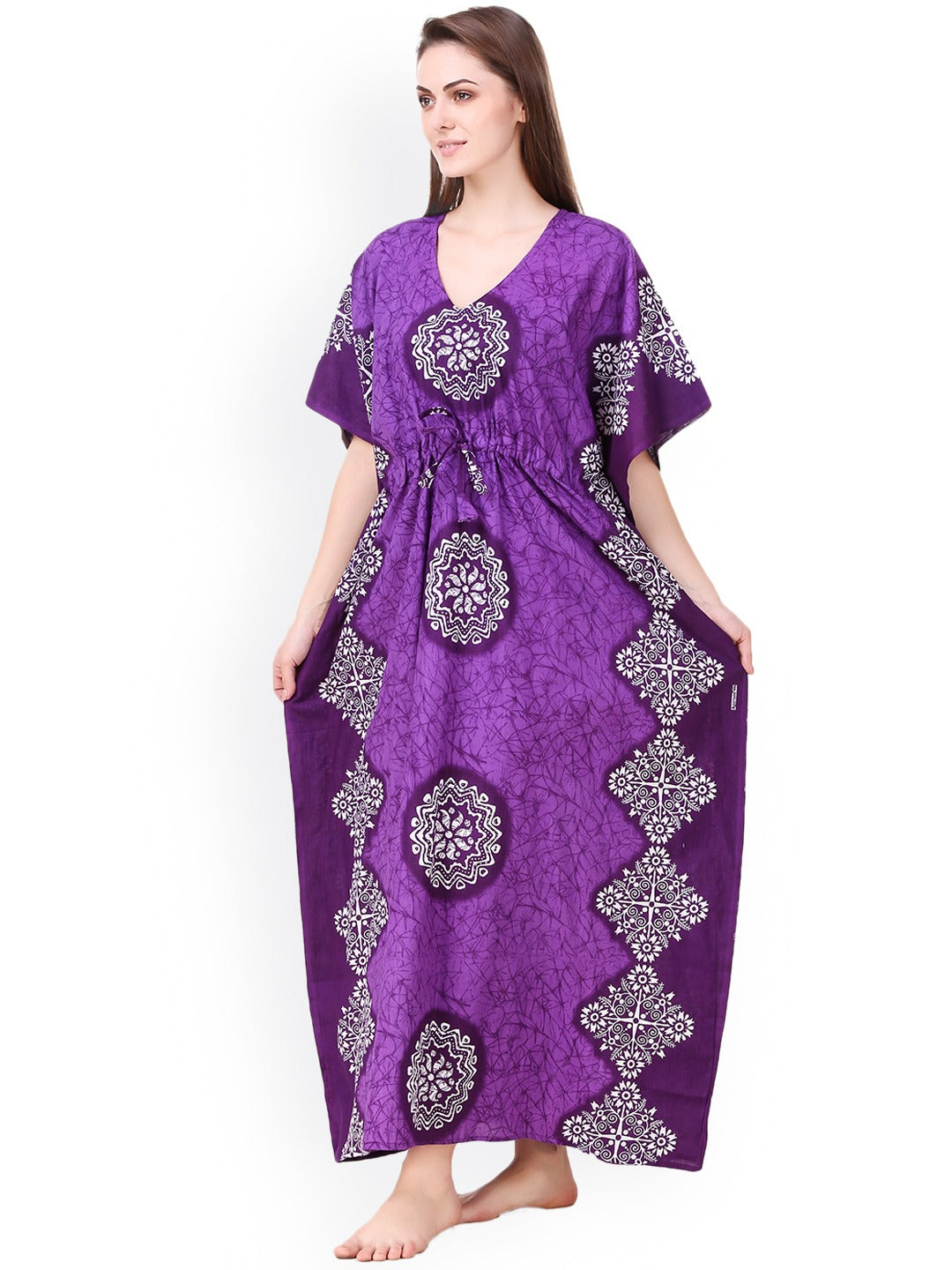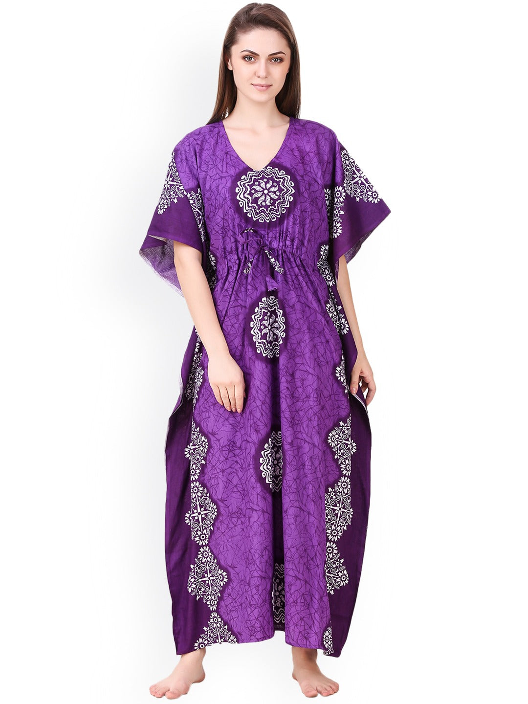 Poftik Kaftan Nighty Cotton Floral Print Kaftan Maxi Night Dress Gown Nighty Dori at Waist