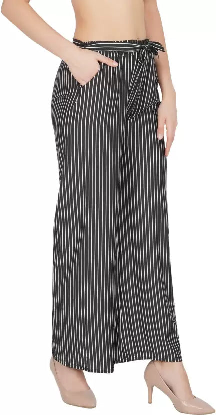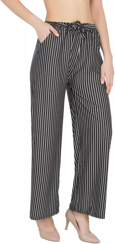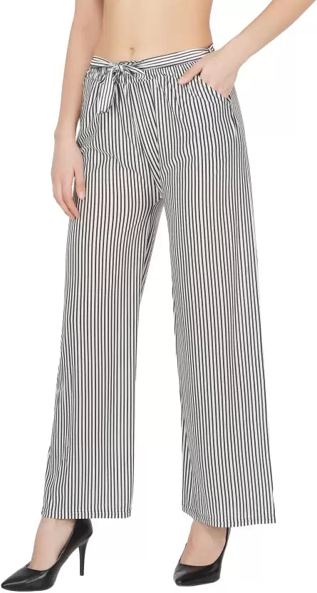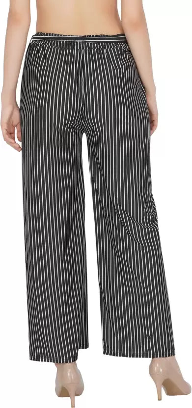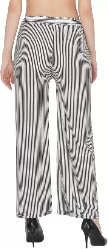 Poftik Regular Fit Women's Striped Casual Wear Palazzo Cotton Lycra Blend Trousers .